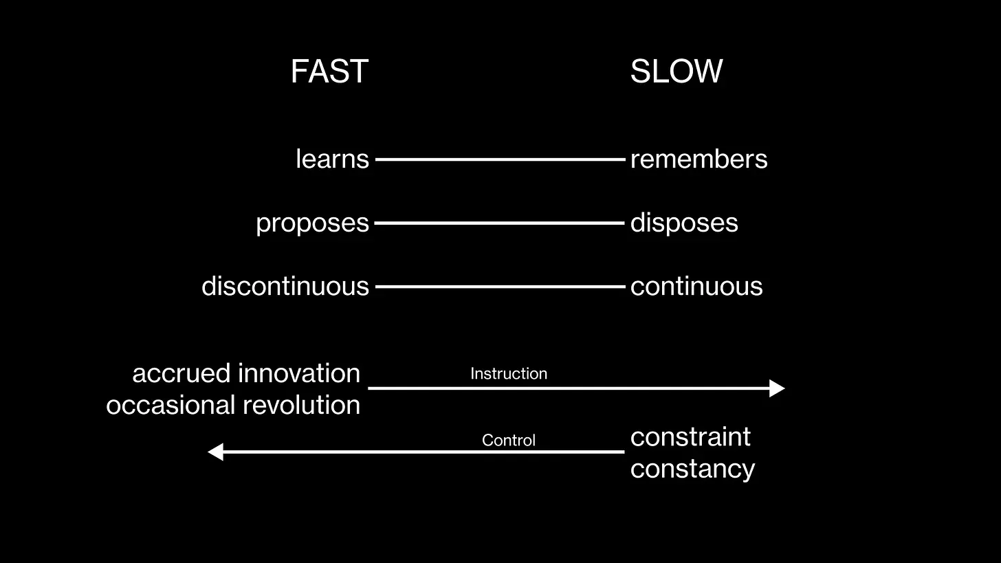 Anyway, whilst this was on our brains, we also thought of the roles of the various different parts of fashion play, and it reminded us of something from a very different source — Stewart Brand and his ‘pace layers’ concept. In this newsletter, we apply pace layers to three types of fashion, fast fashion, designer and luxury, to learn a little more about their roles. It’s provided us with some interesting food for thought.